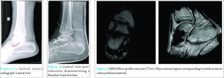 Case presentation: We report a case of a 31-year-old male with a high impact car accident. His pelvic ring and Hawkins II talar fracture were treated by open reduction and internal fixation. Rehabilitation was based on permissive weight bearing following wound healing. His fractures healed uneventfully and he was able to run freely, without any discomfort within 8 weeks. Radiological evaluation of the talus showed complete bone healing without signs of avascular necrosis. At one year follow-up, the patient is free of the symptoms.