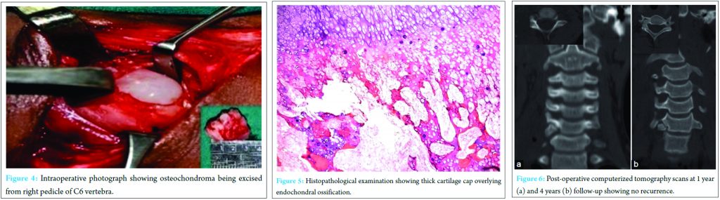 Meticulous clinical and radiological evaluation is essential in management of cervical spine osteochondromas.
