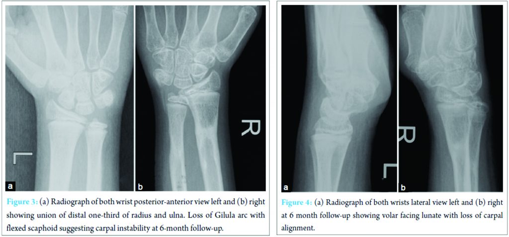 To identify carpal instability following post traumatic wrist injury. Follow up of patient at regular intervals in the post-operative period to promptly identify and treat carpal instability to prevent morbidity.