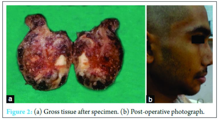 Osteosarcoma is an uncommon condition with an unusual presentation showing various histopathological patterns. This creates problems in correct diagnosis. Clinical appearance and radiology do not help in identification of the histopathological variant of osteosarcoma. Hence, histopathological examination of the fragments from all parts must always be done as the type of osteosarcoma may affect the treatment and the prognosis. In the present case, patient has no complaints to date (2 years post-surgically) (Fig. 2b). Follow-up intervals were every 6 weeks to 3 months in years 1 and 2; later, patient will be followed every 2-4 months in years 3 and 4, every 6 months in years 5-10, and every 6-12 months thereafter. Each visit will include a history and physical examination and a chest X-ray. X-rays of the primary tumor site are recommended every 4 months until the end of year 4. Late metastases may occur >10 years after diagnosis, and there is no universally accepted stopping point for tumor surveillance.