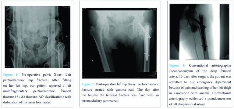 - 3. de Raaff CA, van Nieuwenhuizen RC, van Dorp TA. Pseudoaneurysm after pertrochanteric femur fracture: a case report. Skeletal Radiol 2016;45(4):575-578. [Google Scholar] [PubMed]