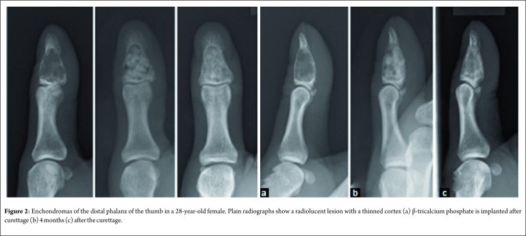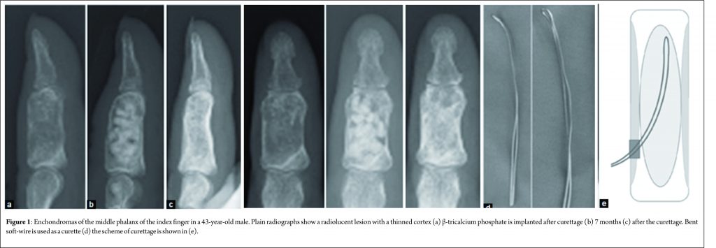 - 3. Rajeh MA, Diaz JJ, Facca S, Matheron AS, Gouzou S, Liverneaux P. Treatment of hand enchondroma with injectable calcium phosphate cement: A series of eight cases. Eur J Orthop Surg Traumatol 2017;27(2):251-254. [Google Scholar] [PubMed]