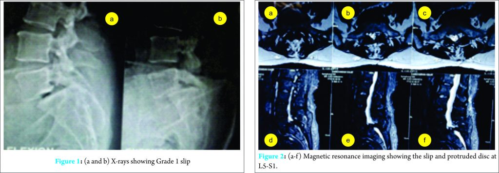 Degenerative lumbar spondylolisthesis (DS) is a disorder that causes the slip of one vertebral body over the one below due to degenerative changes in the spine. It is a major cause of spinal canal stenosis and is often related to low back and leg pain. The degree of spondylolisthesis is based on the widely recognized method proposed by Meyerding who defined the slip on plain radiology in accordance to the vertebra below [5]. The lower vertebra is divided into four parts. Grade I means a translation of the upper vertebra of up to 25%, Grade II of up to 50%, Grade III of up to 75%, and Grade IV up to 100%. Flexion extension views aid in identifying even obscure instability. Decompression and internal fixation improve the symptoms of patients with lumbar spinal stenosis associated with spondylolisthesis. Transpedicle instrumentation can reduce spondylolisthesis and maintain the physical curve of the lumbar spine [6]. The pedicle is the strongest part of a vertebra. They are used to create strong construct in spinal stabilization surgeries [7]. The use of unilateral and bilateral pedicle screw fixation has been described. Hua et al., in their study, have termed unilateral fixation in treating lumbar instability advantageous in terms of lesser complications and cost [2]. According to Eliades et al., the results of both unilateral and bilateral fixation are similar [1]. Similar results were given by Kim et al., after 10 years of follow-up of 147 Grade 1 spondylolisthesis patients, treated with either unilateral or bilateral pedicle screw fixation for posterolateral fusion [3]. Transforaminal lumbar interbody fusion, with the aid of interbody cage and unilateral pedicle screw fixation, is less invasive and improves symptoms. In the present case, the initial plan to do bilateral fixation was changed intraoperatively, in view of poor bone quality of pedicle and strong literature evidence of unilateral fixation having comparable outcomes [1,2,3]. Complications described for such a fixation are hardware failure, infection, and neural damage. In the study by Faraj and Webb, screw-rod disconnection due to a technical error occurred in one case which was subsequently replaced [7]. According to Ohlin et al., transpedicular fixation is a safe procedure with a low incidence of serious early post-operative complications [8]. Early loosening of the rod and migration are very rare and reported infrequently [9,10]. Failure within first 10 days is an even rarer subset. In the present case, the patient was pain-free and mobile, doing active physiotherapy during the 1st week post-operatively. The immediate post-operative X-ray did not show any hardware problem. Hence, the failure could have been due to improper coupling of the inner nut and the pedicle screw similar to the reported case by Aggarwal where the failure occurred after 1 year of surgery [11]. In the present case, the laminotomy on one side with a fixation on the contralateral side could have made the fixation unstable and may have been the plausible cause of such an early failure. The obesity of the patient and early mobilization could have contributed to the early failure of the fixation. In hindsight, we believe quantification of quality of patient’s bone could have been done pre-operatively. The patient was subsequently reoperated with three level vertebral fixations as it is reported to give additional stability, particularly in case of a compromised bone architecture and quality [12].