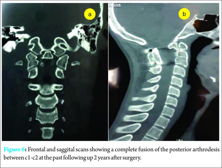 The postoperative follow-up was simple and the radiological control showed a perfect reduction of dislocation (Fig. 5). At the 18-month follow-up, the neurological evaluation is normal and the computed tomography (CT) scan showed a complete fusion of the posterior arthrodesis (Fig. 6).
