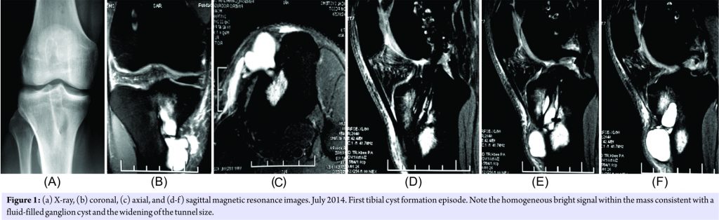 - 11. Sekiya JK, Elkousy HA, Fu FH. Recurrent pretibial ganglion cyst formation over 5 years after anterior cruciate ligament reconstruction. Arthroscopy 2004;20:317-21. [Google Scholar] [PubMed]