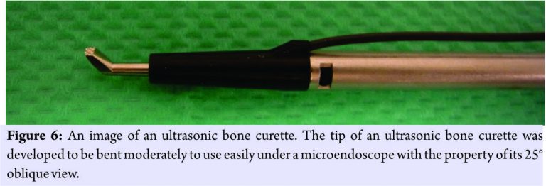 The use of ultrasonic bone curette is easy, safe, and very effective in microendoscopic spine surgery and it helps achieve less invasiveness and ideal decompression, without injuring the nerve root.