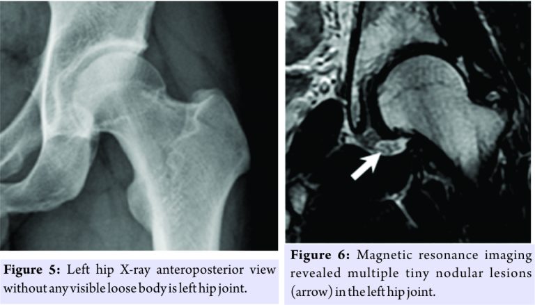 - 3. Marchie A, Panuncialman I, McCarthy JC. Efficacy of hip arthroscopy in the management of synovial chondromatosis. Am J Sports Med 2011;39 Suppl:126S-31S. Available from: https://www.ncbi.nlm.nih.gov/pubmed/21709042 [Google Scholar] [PubMed]