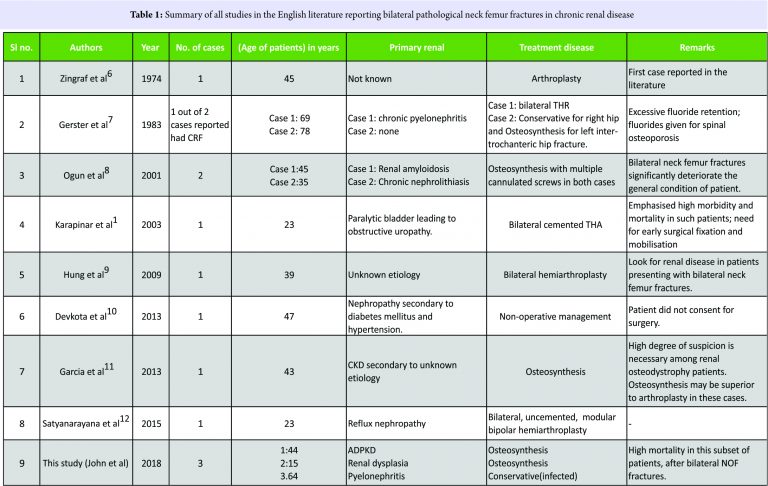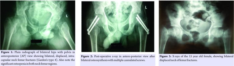 - 12. Sathyanarayana V, Patel MT, Raghavan S, Naresh D. Simultaneous bilateral femur neck fracture in a young adult with chronic renal failure-a case report and review of literature. J Orthop Case Reports 2015;5:24-6. [Google Scholar] [PubMed]