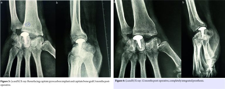 - 3. Goubier JN, Vogels J, Teboul F. Capitate pyrocarbon prosthesis in radiocarpal osteoarthritis. Tech Hand Up Extrem Surg 2011;15:28-31. [Google Scholar] [PubMed]