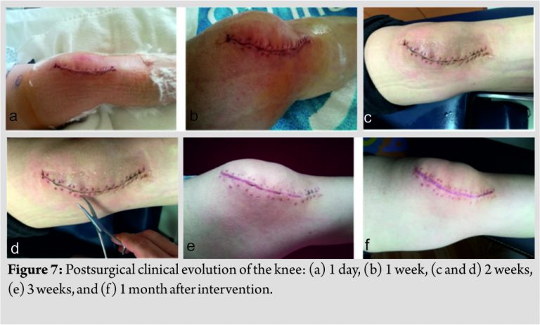 Prior diagnosis was confirmed by histopathological examination(Fig. 6)altogether with clear margins from adjacent tissues: dermis, deep dermis, tendinous and rotula -both superior and inferior- fragments with no sign of lesion. Thus further antineoplastic interventions, for example, radiotherapy, were not needed. At the moment (i.e., 6 months after surgery), the patient has recovered as expected, regained almost full function of the knee and quadriceps (Fig. 7) and has no alterations in the biomechanics of the knee nor pain. Moreover, there is no evidence of recurrence. Regular follow-ups were suggested.