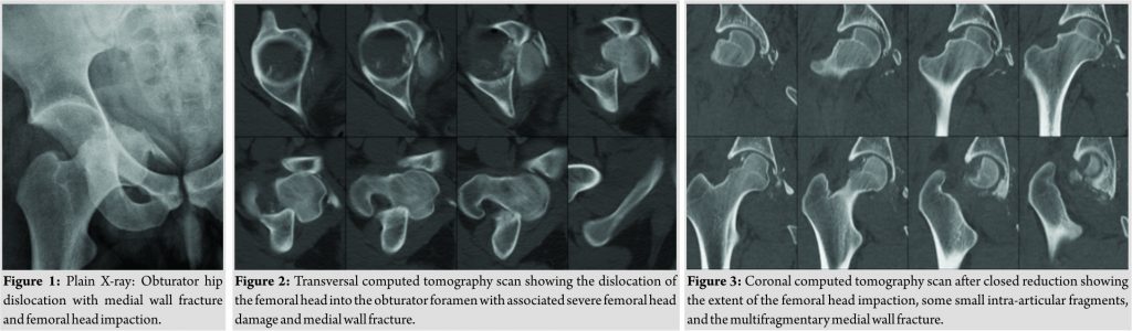 - 5. Rancan M, Esser MP, Kossmann T. Irreducible traumatic obturator hip dislocation with subcapital indentation fracture of the femoral neck: A case report. J Trauma 2007;62:E4-6. [Google Scholar]