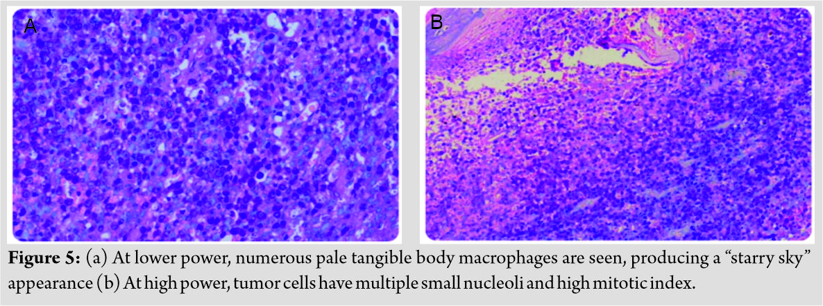 Staging of the patient was done by ruling out any synchronous or metachronous disease elsewhere by doing CT scan of chest and abdomen and bilateral bone marrow biopsy. Hence, a diagnosis of PBL with a histological diagnosis of ALCL was made. Treatment was carried out as advised by the oncology team, with 3 cycles of chemotherapy (CHOP – cyclophosphamide, doxorubicin, vincristine, and prednisone) followed by 5 cycles of localized radiotherapy. Supportive treatment in terms of prevention of anemia and infection was given. He did not have any presentation of any diseased lymphadenopathy or organomegaly during the course of treatment. At the last follow-up at 12 months, the wound over the posterior aspect had healed with the patient being ambulatory.