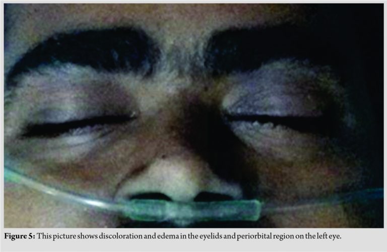 4. Extraorbital pressure evidenced by periorbital ecchymosis and edema