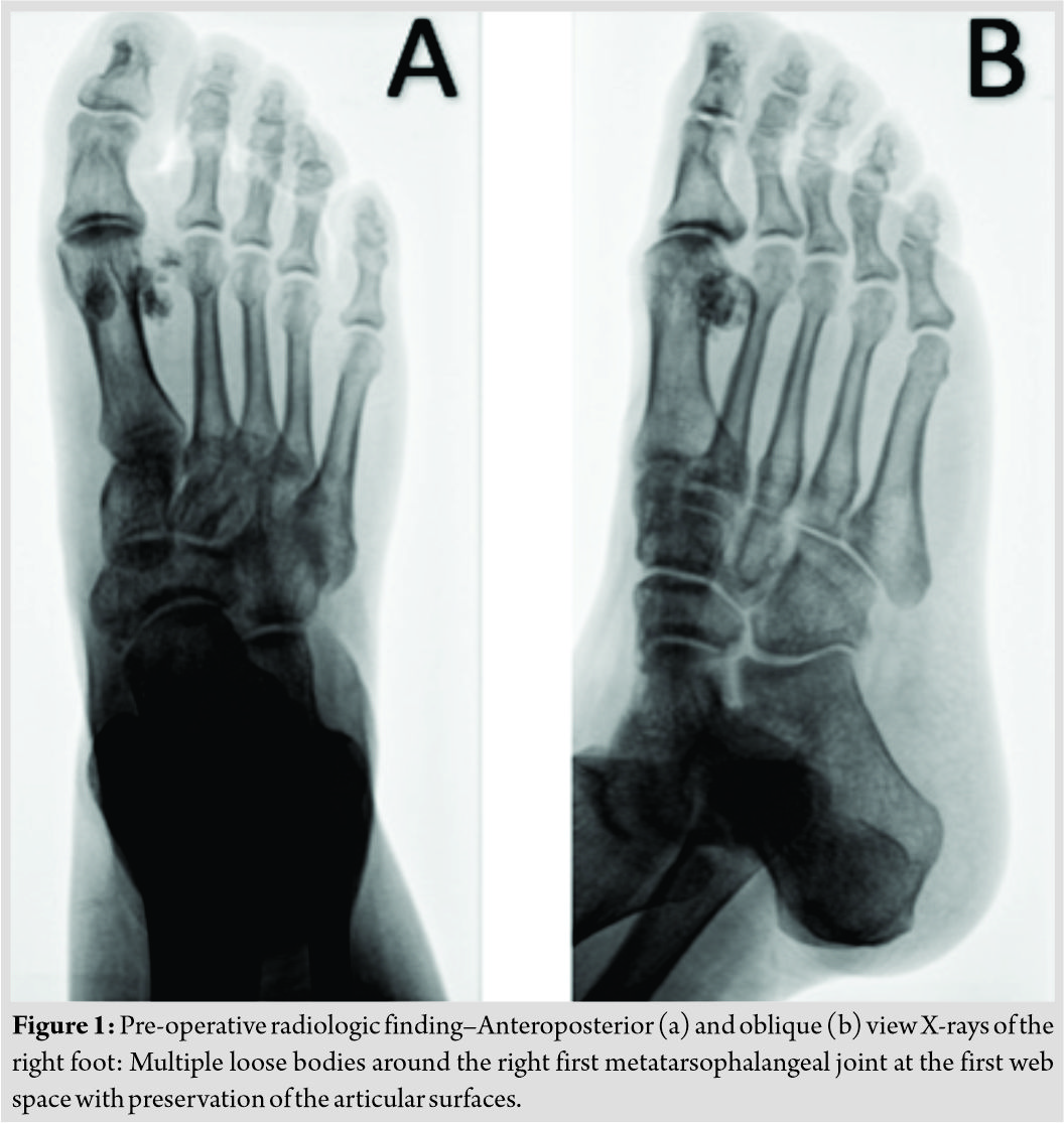 How to Cite This Article: Synovial Chondromatosis in the First Metatarsophalangeal Joint: A Case Report of this Uncommon Condition and Review of Current Literature. Journal of Orthopaedic Case Reports 2019 September, 9(09): .