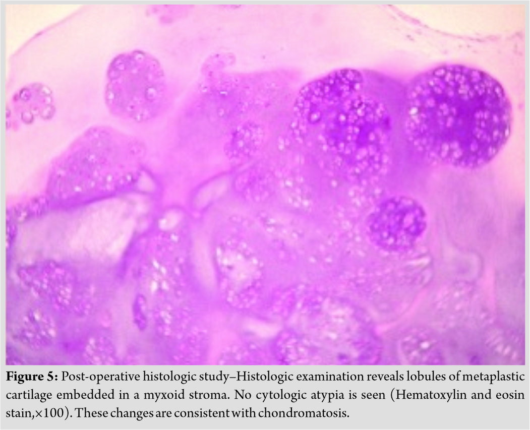 12. Milgram JW. Synovial osteochondromatosis: A histopathological study of thirty cases. J Bone Joint Surg Am 1977;59:792-801.