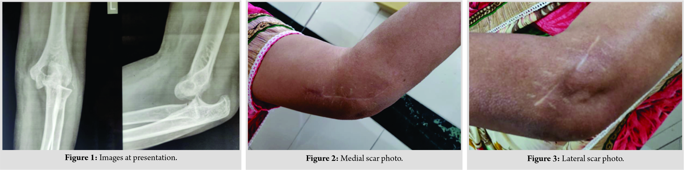 Introduction: Chronic elbow dislocation is a highly disabling condition to be treated and to provide a successful functional outcome. Surgical treatment of such conditions might result in persisting instability or stiffness of the elbow joint due to associated shortening and contracture of the soft tissues and articular incongruity. Most of the described open reduction techniques are through an extensile posterior approach which might result in increased post-operative stiffness. We report the treatment of such a case with separate medial and lateral incisions with the excellent functional outcome at 1-year follow-up.