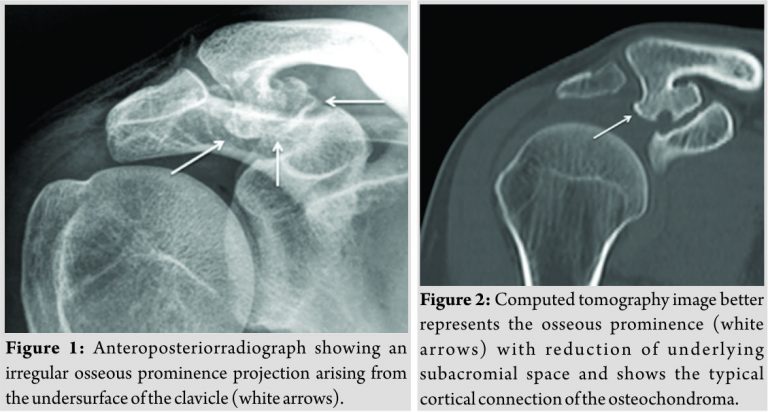 - 4. Fallon PJ, Hollinshead RM. Solitary osteochondroma of the distal clavicle causing a full-thickness rotator cuff tear. J Shoulder Elb Surg1994;3:266-9. [Google Scholar] [PubMed]