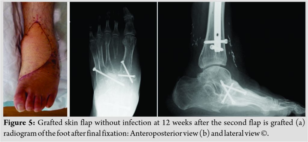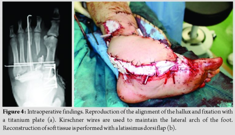 Conclusions: Limb salvage can be successfully performed even in a patient with a severely mangled foot. For successful salvage surgery with good outcomes, such patients should be managed by a team of experienced orthopedic and plastic surgeons from an early stage to achieve appropriate bone alignment and soft tissue coverage.