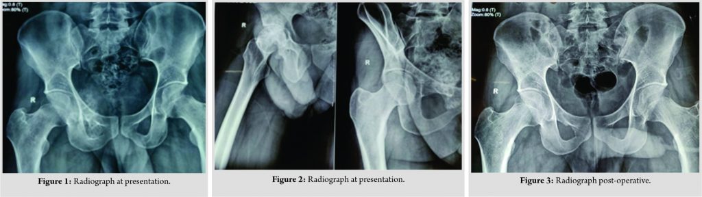 A 24-year-old healthy male student presented with complaints of a swelling in the right side inguinal region for 2 years. The swelling was insidious in onset, gradually progressive and was not associated with pain, but the patient complained of irritation and mass effect due to the swelling specially when wearing belt or tight clothing. On examination, there was a hard swelling of approximately 8 cm × 11cm size over the right inguinal region, medial to the mid-inguinal point. The swelling was non-tender, non-mobile, and fixed to underlying bone but not adherent to skin or overlying tissue. Cough impulse was absent. X-ray pelvis with both hips anteroposterior view and oblique views (Fig. 1) showed exostosis arising from superior pubic rami. Non-contrast helical computerized tomography (CT)pelvis with both hips (Fig. 2) showed a pedunculated round to oval lesion in continuity with cortex of superior pubic rami on the right side arising from outside surface. It had a cartilaginous cap.