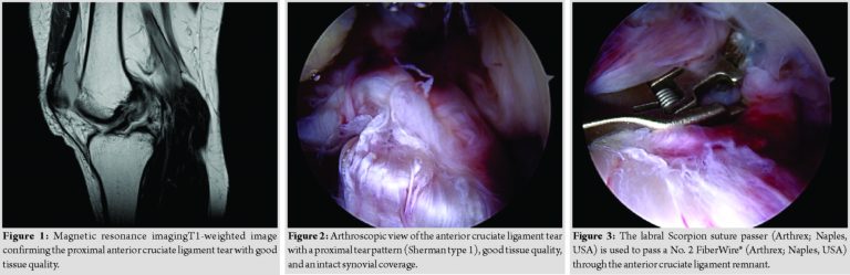 - 14. Heusdens CHW, Hopper GP, Dossche L, Roelant E, Mackay GM. Anterior cruciate ligament repair with independent suture tape reinforcement: A case series with 2-year follow-up. Knee Surg Sports TraumatolArthrosc2019;27:60-7. [Google Scholar]