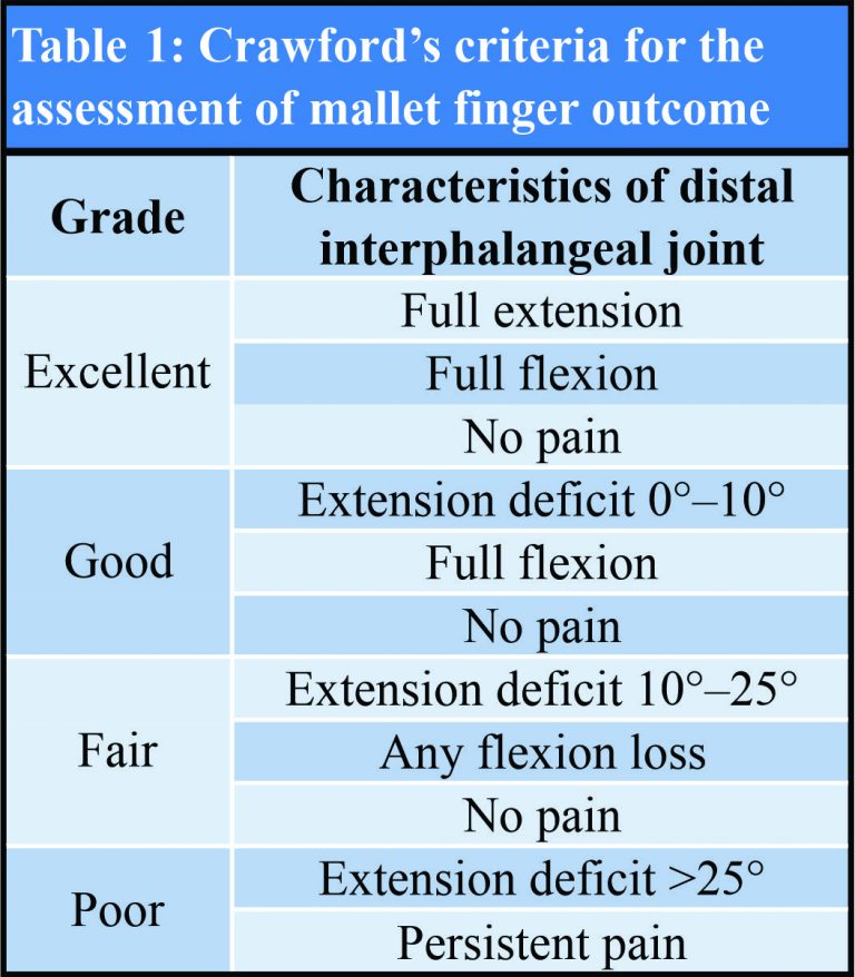 - 4. LubahnJD. Mallet finger fractures: A comparison of open and closed technique.J Hand Surg Am1989;14:394-6. [Google Scholar]
