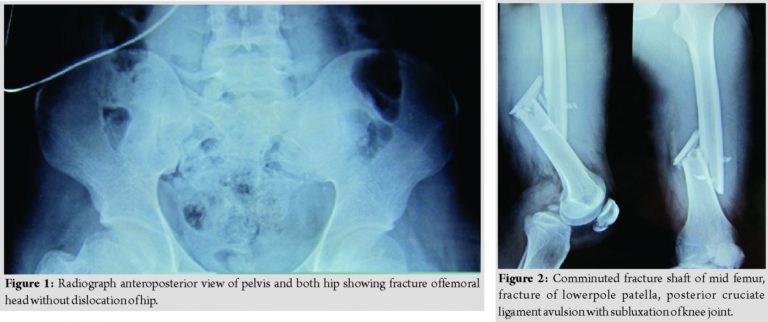 Traumatic injuries of the hip joint are increasing in number due to road traffic accidents [7]. They are hip dislocations, dislocation with fractures, and fractures without dislocation. The lesions depend on the speed and direction of the injuries forces but also to the position of the hip at the time of impact. The position of the hip, such as adduction or abduction, flexion, and rotation, determines if the hip dislocates with or without fractures. The fractures can concern femoral neck, femoral head, greater trochanter, or posterior wall of the acetabulum. Hip dislocations associated with fractures have been described by many authors [2,8,9,10]. Low-energy trauma in old age group or osteoporotic bones results in pertrochanteric femoral fractures, while low-energy trauma in young people with normal bones may fail to break the neck or trochanter of femur, instead of transmitting the injuring force to the femoral head. This would result in the fracture of the femoral head instead of the neck without dislocation of the hip. Femoral head fractures are relatively uncommon injuries, which occur in 5–15% of all hip dislocations [8]. Femoral head fractures are usually associated with hip dislocations. An extensive review of the literature has revealed only few cases of the femoral head fracture without hip dislocation published untildate [11,12]. All these cases were associated with either fracture of the neck of the femur or fracture of the acetabulum. Kim et al. documented two cases of the femoral head fracture without dislocation of the hip. In case, one femoral head fracture was associated with fracture of the neck and intertrochanteric femur, while the other one was associated with fracture of the neck of femur. Mody and Wainwright reported two cases of the femoral head fracture without hip dislocation [13]. Both patients had low-energy trauma. Fabre et al. reported a case of comminuted fracture of the femoral head and neck and acetabulum without dislocation of the hip following a high-energy trauma [12]. Aggarwal documented a 1-year-old neglected case of the femoral head fracture without dislocation of the hip in young male following high-energy trauma [5]. Among all the previous cases were managed by either total hip replacement or conservative management. In our case, femoral head fracture without dislocation might have occurred probably due to high-energy impact on the femoral head with force acting along with the long axis of the fractured femoral shaft. We managed the femoral head fracture by safe surgical dislocation of hip technique and fixed with multiple Herbert screws. The possibility of fracture of the femoral head should be kept in mind, especially in high energy trauma, polytrauma patients to prevent the neglect, and delay in treatment. The purpose of this case study is early diagnosis of fracture of the femoral head in high-energy trauma without dislocation of the hip joint. We emphasize that traumatic hip fracture without dislocation is rare entities, early diagnosis and prompt management are the key determinant of an excellent result.