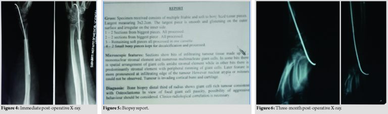 BhagatS, BansalM, JandhyalaR, SharmaH, AminP, PanditJP. Wide excision and ulno-carpal arthrodesis for primary aggressive and recurrent giant cell tumours.Int Orthop2008;32:741-5. [Google Scholar]