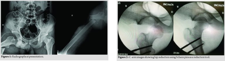 Conclusion: Anterior hip dislocation with ipsilateral subtrochanteric femur fracture in a young adult requires early emergency evaluation and rapid intervention (reduction within 6 h) and early closed reduction of the joint helps decreasing the risk of complications such as avascular necrosis and chondrolysis and joint reduction with fracture fixation allows early rehabilitation.