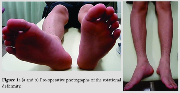 We clinically determined the foot progression angle to indicate the amount of rotation before and after surgery.