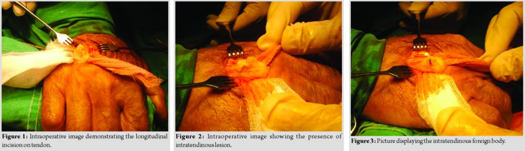 - 9. Jozsa L, Reffy A, Demel S, Balint JB. Foreign bodies in tendons. J Hand Surg Br 1989;14:84-5. [Google Scholar]