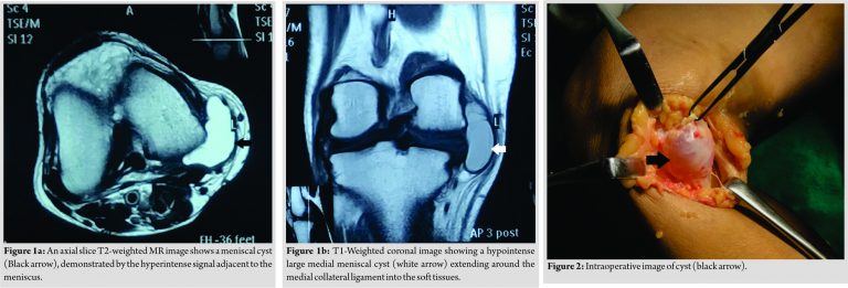 - 8. Herode P, Shroff A, Mandlewala V, Chaudhary A. Post-traumatic medial meniscal cyst in young: A case report. J Orthop Case Rep 2016;6:7-9. [Google Scholar]