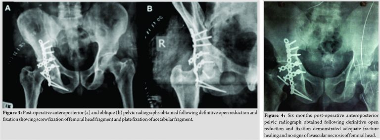 Hip joint fractures associated with dislocation are relatively rare and often associated with a poor functional outcome [17]. Treatment strategies in femoral head fracture-dislocations are very controversial and represent one of the few true orthopedic emergencies. Reduction must be done as soon as possible. The time elapsed between dislocation and reduction of hip joint is an important element for a good outcome as it has been reported that early reduction (within 24 h) is associated with better results than late reduction [7]. Some authors have shown that the joint should be relocated within 6 h; failure to do so increases the risk of avascular necrosis of the femoral head [17]. There are several reports of good results after primary hip replacement in these injuries [8,9] and given the age and duration of injury in the above patient one would be more inclined to replace it totally. However, patient was a farmer by occupation and required deep squatting and crossed leg sitting for earning his daily livelihood which would have been difficult after joint replacement. We also faced the same dilemma in deciding the appropriate modality and approach for this neglected injury but after discussing with the patient, it was agreed to perform ORIF for this gentleman. Anterior approach would have allowed easy reduction and fixation of the femoral head fracture, but we adopted the posterior Kocher-Langenbeck approach as this approach prevents further destruction of the soft tissue of the anterior hip; it preserves the blood supply of the anterior capsule; and it can simultaneously be used to repair the injury to the posterior capsule, which is beneficial for the recovery of the blood supply to the femoral head. In addition, good exposure of the acetabular fracture allows reduction to be accomplished under direct visualization, thereby restoring the congruency and stability of the hip. At the same time, surgery should be performed carefully to reduce the stripping and cutting of the gluteal muscles as much as possible, to protect the remaining blood supply of the hip joint and reduce the incidence of post-operative avascular necrosis of the femoral head.
