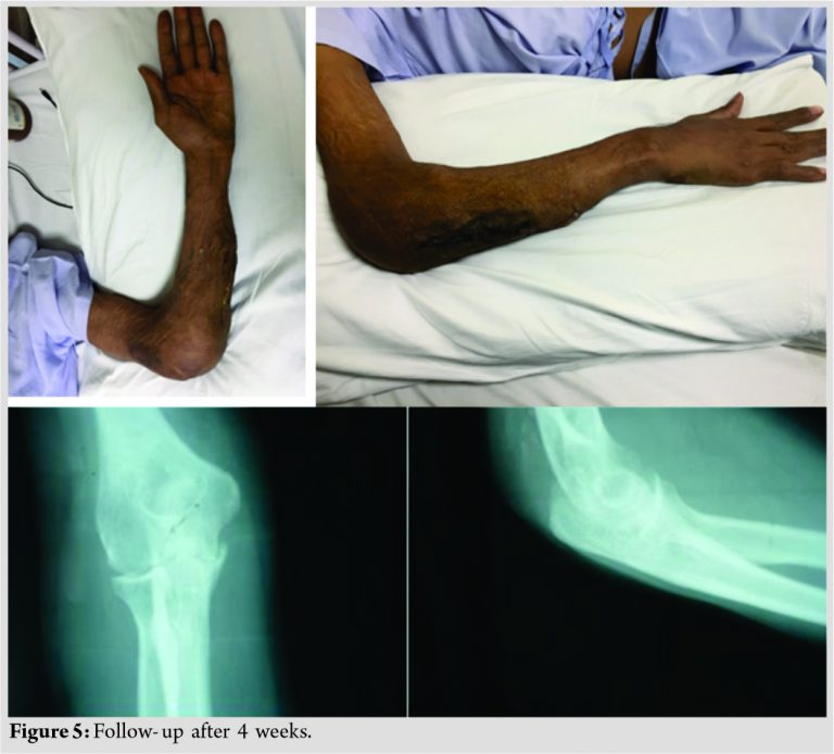 Conclusion: Tuberculosis of elbow along with that of a forearm is rare and surgical intervention can lead to better outcomes in these patients.