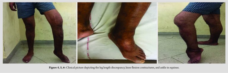 A 35-year-old male presented to us in the outpatient department with a 17 years old history of pain, stiffness (of the knee, ankle, and foot), and deformity of the left lower limb. There was also a history of limb length discrepancy from the past 8 years. Surgical history revealed that he had undergone surgery of his right knee 10 years back for pain and stiffness at some other institution and some loose bodies were extracted out. Nature of which was not known. The patient was not satisfied with the outcome of the surgery. Medical history revealed that he was on pain killers off and on. There was no history suggestive of infection, trauma, inflammatory arthropathy, or tuberculosis. On examination, there was no tenderness and no signs of inflammation.