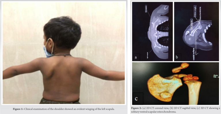 - 7.Alatassia R, Koabana S, Almugebelb I, Alshehri A. Scapular osteochondroma with winging: A case report. Int J Surg Case Rep 2018;45:138-42. [Google Scholar]