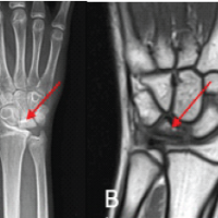 Agarwala et al. [17] studied 100 hips with osteonecrosis (40 bilateral and 20 unilateral) including five cases of post-traumatic types. All of them were treated with alendronate 10 mg per day or 70 mg once per week, with 500–1000 mg of calcium and 400–800 IU Vitamin D3 and kept non-weight bearing. NSAIDs and analgesics were permitted as needed. They were assessed on the basis of changing requirement of analgesics X-rays (every 3–6 months) and magnetic resonance imaging (at interval of 3–12 months). He concluded that bisphosphonate can be beneficial for patients with early post-traumatic osteonecrosis provided there is no progression of collapse. There was functional improvement and prevention of osteonecrosis progression in their study. In our case, alendronate 70 mg weekly had been started after 2 years for a duration of 2 years, with other medications as explained.