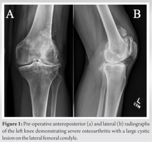 - 18.Rajani AM, Kumar R, Shyam A. Huge subchondral cyst communicating with medulary canal of femur in OA knee-treated by extension stem and bone grafting. J Orthop Case Rep 2014;4:81-4. [Google Scholar]
