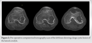 - 17.Ohishi T, Takahashi M, Suzuki D, Matsuyama Y. Giant intraosseous cyst in an osteoarthritic knee. Orthopedics 2016;39:e1193-6. [Google Scholar]
