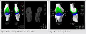 As per the Mako Robotic design, capturing medial and lateral gaps in extension is only feasible if the limb flexion is < 20°, which was not the case for our patient. Hence, we decided to implement the mid-resection workflow.