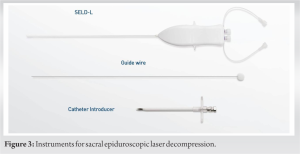 Introduction: The concept of sacral epiduroscopic laser decompression (SELD) is based on the introduction of a steerable catheter in the sacral hiatus followed by the insertion of a fiberoptic laser system into the ventral side of the epidural disc space with an epiduroscope. This procedure enables the direct decompression of the ruptured annulus as the laser vaporizes the bulging disc in the herniated part, cauterization of the sinuvertebral nerve, adhesiolysis of structures nearby the nerve root, and irrigation of inflammation with saline and steroids.