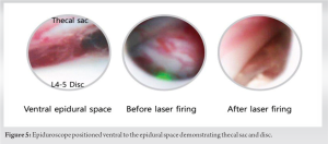 Conclusion: The procedure is a useful technique in treating lumbar disc herniation with rapid pain relief and improvements in functional outcomes without any injury to paraspinal muscles or any resection of the ligaments and bony structures. SELD is safe, precise, and effective in the treatment of symptomatic lumbar lesions. Improvements in the optics and visuals with advancements in lasers’ ability to ablate tissue could be beneficial. Large, randomized, and multicenter trials are needed to further explore the potential of SELD.