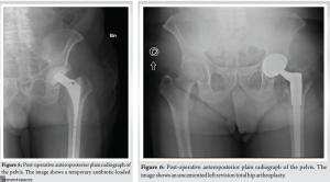 S. caprae is a Gram-positive bacillus belonging to the Staphylococcus spp. It is a common commensal in goats and sheep, but it is a rare pathogen in human infections [10]. There have been reports of PJIs, although S. caprae still remains an unusual cause of infection [11]. Despite being acknowledged as a commensal organism in animals, only 20% of individuals who contract S. caprae infections have any documented history of animal interaction. In our specific case, there was no reported recent contact with animals or engagement in high-risk activities. While orthopedic hardware infections have a polymicrobial cause due to contamination from the traumatic and dirty wound, 60% of PJIs tend to be monomicrobial [11]. Due to its extremely low incidence, there is no unanimous agreement on the optimal therapeutic approach for S. caprae PJIs. Treatment options for PJIs include debridement, antibiotics, and implant retention (DAIR), two-stage revision exchange, one-stage revision exchange, major partial one-stage revision (removing either the femoral stem or acetabular shell), and minor partial one-stage revisions (where only the femoral head and/or acetabular liner are replaced). Although there have been previous authors reporting successful treatment of S. caprae PJIs with these treatment options [8-12], the best method has not been established. In our specific case, due to the negative results obtained from the initial wound samples, we proceeded with partial one-stage revision, removing only the femoral stem due to the suspicion of aseptic loosening of the femoral stem. The femoral stem was sent for sonication. Seven days later, the presence of S. caprae was detected. We proceeded with a two-stage revision since according to literature that it is the protocol which allows the lowest rates of reinfection [13]. Two-stage revision THA often involves severe bone loss that presents the treating surgeon with a complex reconstructive challenge with an increased risk of dislocation [14-17]. About the antibiotic treatment administered, we acknowledge that there is no consensus on the best antibiotic therapeutic approach for S. caprae. The existing medical literature supports the use of combination of fluoroquinolone with rifampicin [11]. In our specific case, we used a combination of minocycline, rifampin, daptomycin, and dalbavancin. Rifampin inhibits bacterial DNA-dependent RNA polymerase and had the advantage of good oral bioavailability, allowing us to continue adequate long-term outpatient therapy [18]. Successful treatment was accomplished with a two-stage exchange protocol and a targeted antibiotic therapy with good function outcomes, the left hip was pain-free without any clinical signs of infection and with a full R.O.M.