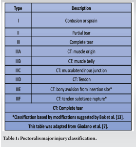 - 10.ElMaraghy AW, Devereaux MW. A systematic review and comprehensive classification of pectoralis major tears. J Shoulder Elbow Surg 2012;21:412-22. [Google Scholar]