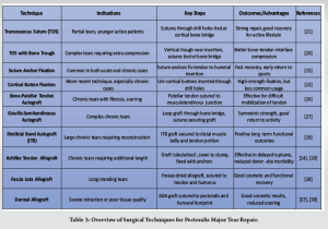 Surgical intervention generally improves outcomes for chronic tears, with repair versus reconstruction choices influenced by age and injury severity. The literature does not identify a superior fixation technique, highlighting the need for personalized approaches and effective post-operative rehabilitation.