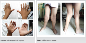 These can include valgus deformity of the knees, lumbar lordosis, and polydactyly of the feet, with other rare anomalies such as urinary tract anomalies, strabismus, congenital cataracts, cryptorchidism, and epi- and hypospadias [12].