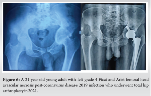 Keywords: COVID-19, pandemic, osteonecrosis, femoral head, osteonecrosis of the femoral head/femoral head avascular necrosis, India, Asia, total hip replacement/total hip arthroplasty.