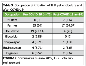 To study the change in trend among patients who underwent total hip arthroplasty (THA) (THR) before and after COVID-19 pandemic. That is