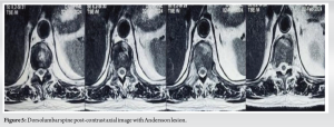 It is crucial to identify Anderson lesions, as they are chronic lytic lesions that are overlooked due to chronic pain of AS, which leads to instability of the spine. The foundation of treatment for progressive symptoms, severe discomfort, kyphotic deformity, or neurological problems is conservative management. Surgical management is required to alleviate pain, neurological Involvement, and its progression in progressive kyphotic deformities.