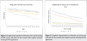 Materials and Methods: Five patients having PIs of Grade IV according to NPIAP classification in whom we applied NPD were included. Pressure ulcer scale for healing (PUSH), reduction of surface area of the wounds was recorded on a weekly basis. Functional independence measure (FIM) score of the patients was evaluated at admission and at discharge. Healing rate by means of PUSH score and surface area were recorded.