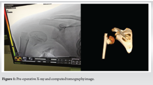 A 5-year-old right-hand dominant girl presented to the emergency department after falling approximately 5 ft from the second birth of a train onto her outstretched left hand, resulting in severe pain and visible shoulder deformity. She experienced immediate swelling and inability to move her left arm but had no loss of consciousness or other injuries. On examination, the left shoulder appeared grossly deformed with a visible sulcus sign, extensive swelling, and ecchymosis. The patient held her arm in slight abduction and external rotation, refusing movement due to pain. Neurovascular examination revealed intact distal pulses and no sensory or motor deficits. Radiographs revealed a severely displaced proximal humerus fracture with anterior glenohumeral dislocation. CT confirmed a Neer-Horwitz Type IV fracture with significant displacement and varus angulation (Fig. 1).
